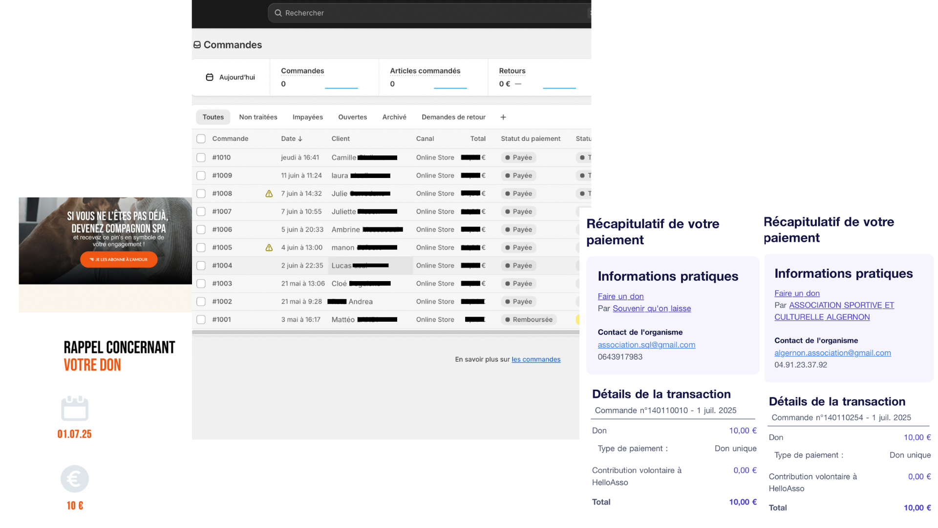 Sur cette page, vous verrez les montants versés mensuellements aux associations partenaires grâce à vos commandes.